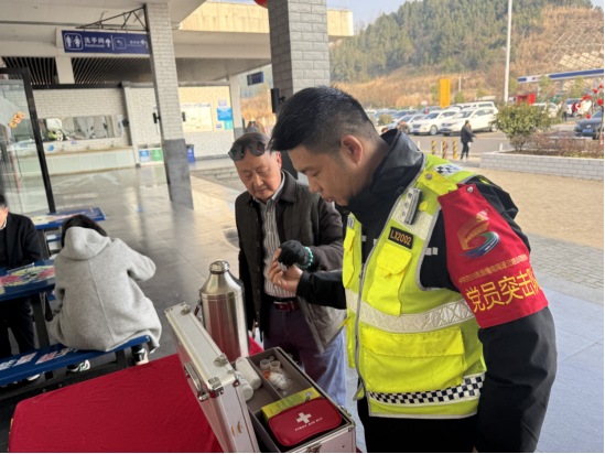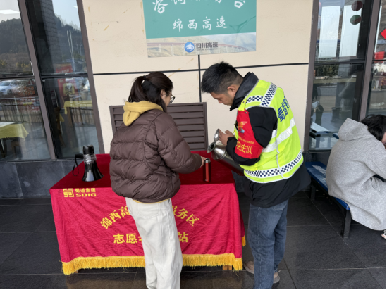 为营造春节期间和谐、温馨的出行氛围,“赤子”突击队组建春节志愿服务队,在绵西高速榉服务区设立党员志愿服务示范岗,亮身份、作表率,主动走到人民群众中去,为人民群众提供路况咨询、应急药品、免费开水、停车指引等志愿服务,用心用情把新春的祝福传递人民群众心中,让司乘人员在繁忙的旅途中感受到绵西高速优质的服务。春节期间,“赤子”突击队累计服务人民群众1000余人次。