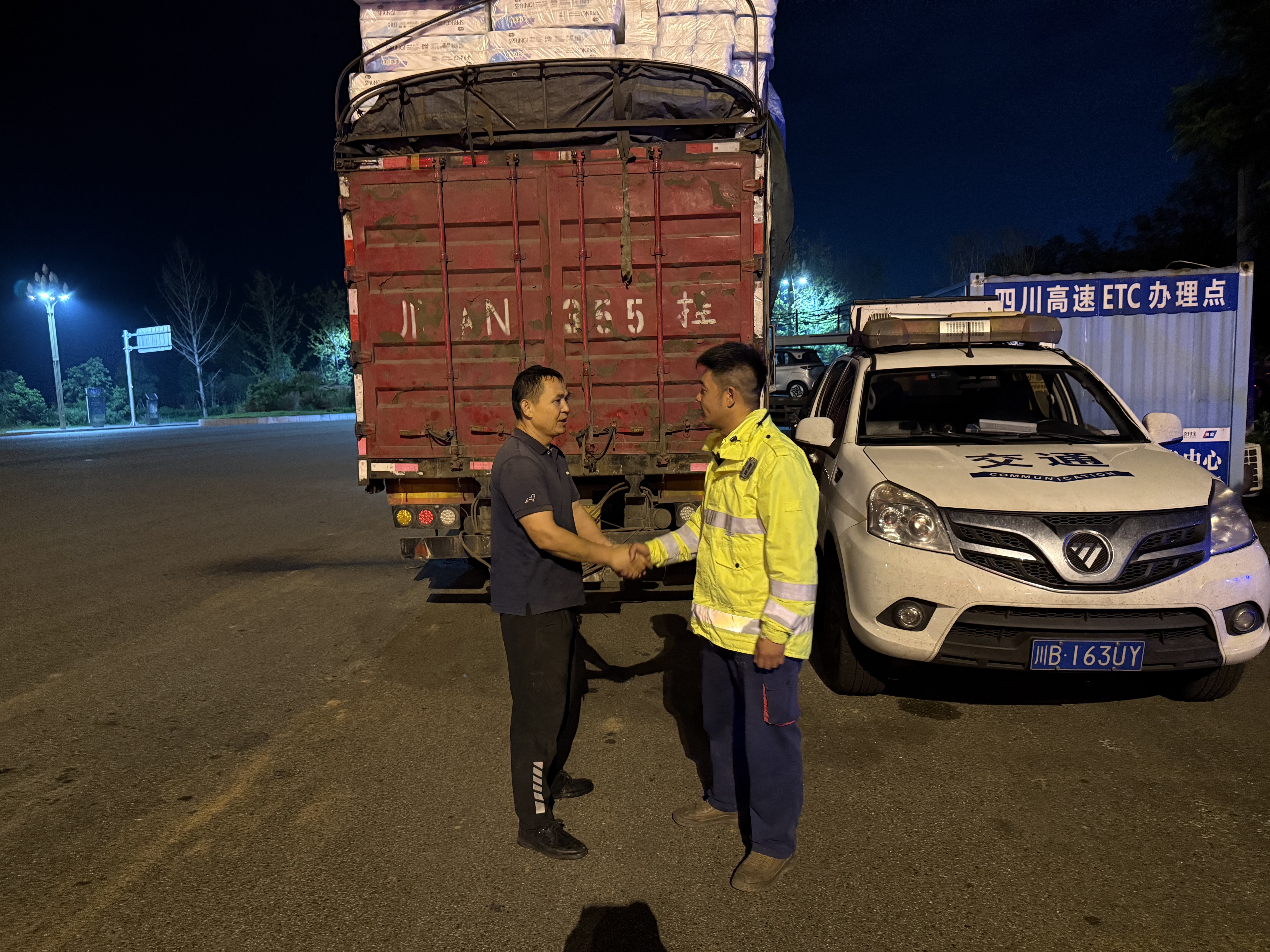 了解情况后,两位队员一边安抚王师傅的情绪,一边立即投入援助工作。深秋的傍晚寒意渐浓,但他们毫不犹豫地伸出援手,与王师傅一同整理、搬运散落货物。经过三个多小时的连续忙碌,所有掉落的货物终于被安全整齐地重新装车,解决了王师傅的燃眉之急。最后,王师傅双手紧紧的握住队员们的手,满含眼泪的说到:“我跑货车二十多年了,以前常常在电视上看到党员帮助司机的感人事迹,今天在绵西高速我深切感受到共产党员了真诚、优质、热情的服务,绵西高速党员突击队感谢你们”。