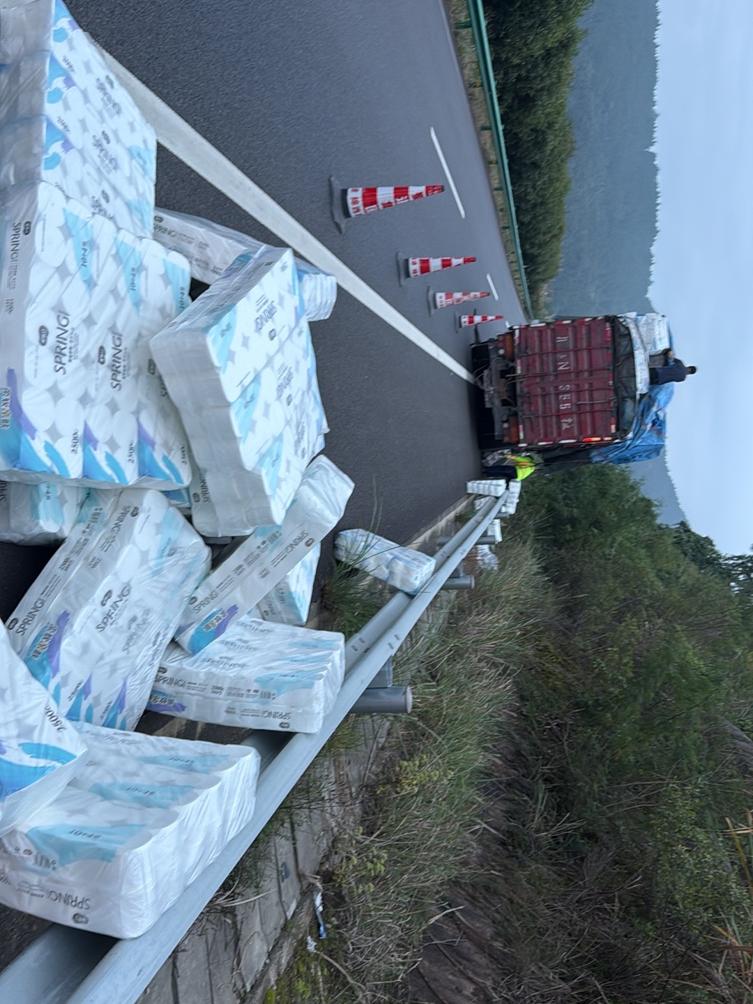 这面锦旗背后,是一个发生在深秋时节的暖心故事。2025年10月30日17时43分,第五党支部“赤子”突击队队员在执行日常安全巡查任务时发现,绵西高速绵西向K22+990处应急车道上,一辆车牌为川AN355挂的六轴货车停靠路边,车后散落着大量包装纸巾。司机王师傅独自在现场焦急无措,情况十分紧急。发现这一情况后,队员吴泽宇、吴京立即采取行动,迅速将巡逻车安全停靠,设置现场警示标识,随即上前了解情况。王师傅焦急地解释道,在行驶过程中因货物绑绳突然松动,导致部分纸巾倾撒滑落。面对散落一地的货物,他一时手忙脚乱、不知所措。
