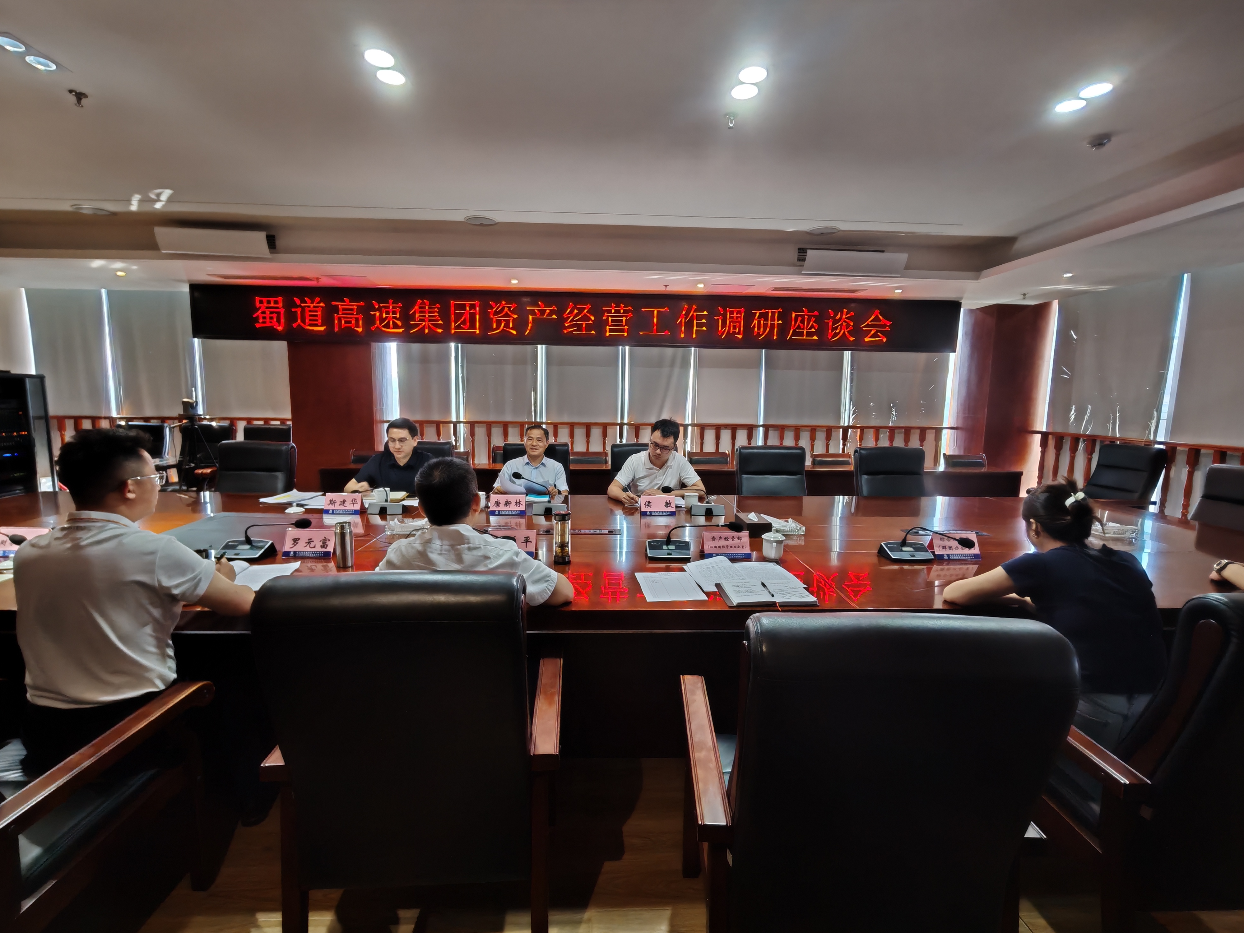 8月14日,蜀道高速集团党委委员、职工董事、工会主席唐新林率队至南渝绵南公司就资产经营工作开展调研座谈。南渝绵南公司党委副书记、董事、总经理刘益平,副总经理罗元富出席座谈会。