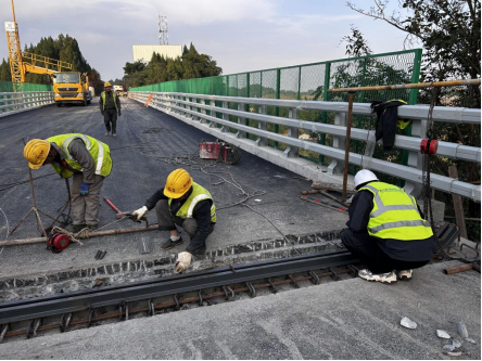 当桥梁检测结果亮起“红灯”,南渝绵南公司党委迅速将练山湾大桥修复工程列为2025年“一号工程”,旋即建立“公司统筹+专家智库+一线攻坚”三级联动体系,充分保障人员、设备资源,累计投入超千万元;各级主要领导多次现场踏勘督办,严格把控质量安全,并协调多方力量优化交通疏导,最大限度减少施工影响。盛夏时节,桥面钢板温度时常突破50℃,工人们为完成精细铺装,长时间跪地作业,汗水浸透、裤腿磨破依然坚持。正是这份汗水与匠心,铸就了大桥的每一寸坚实。经过270余天的奋战,练山湾大桥于12月上旬顺利通车,比原计划缩短20余天。