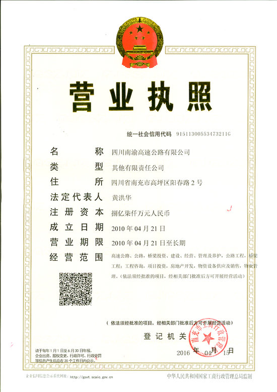 四川南渝高速公路有限公司营业执照