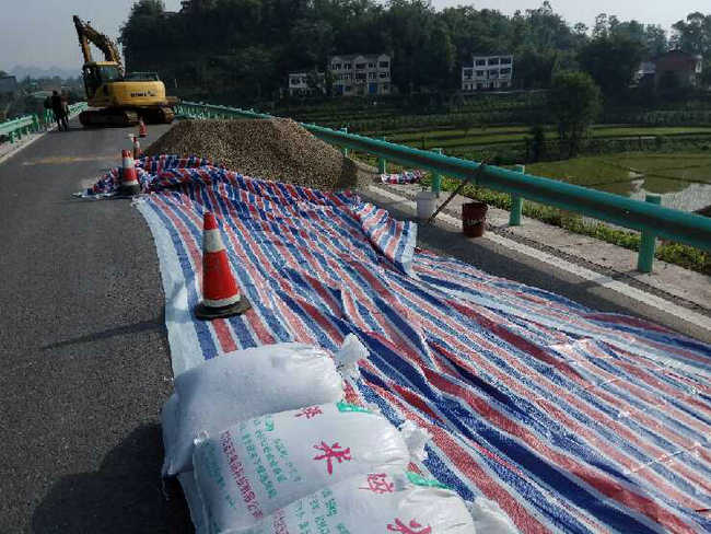 因近期连日暴雨,2017年5月5日下午,南大梁高速公路石桥铺收费站外700米处的地方道路连接线右半幅路面出现沉降裂缝,开裂长度约二十米,缝宽1-2厘米,致使进出石桥铺收费站的车辆通行缓慢。
